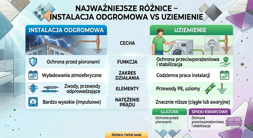 Najważniejsze różnice – instalacja odgromowa vs uziemienie