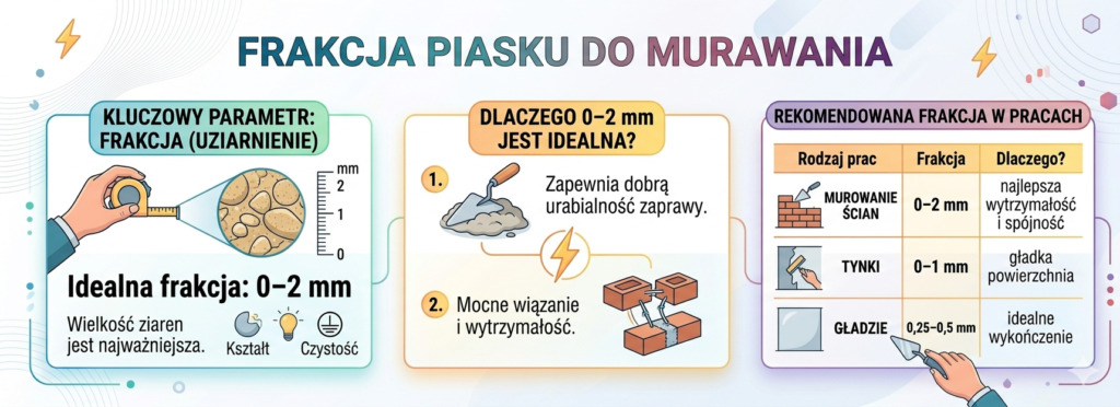 Najważniejszym parametrem piasku jest wielkość ziaren. Dla zapraw murarskich obowiązuje zasada: