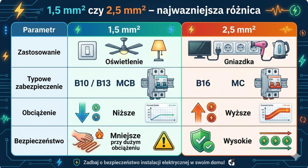 1,5 mm² czy 2,5 mm² – najważniejsza różnica