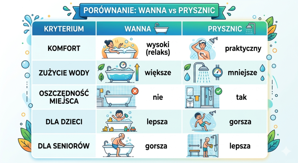 Wanna czy prysznic – co lepsze do łazienki? Porównanie zalet i wad
