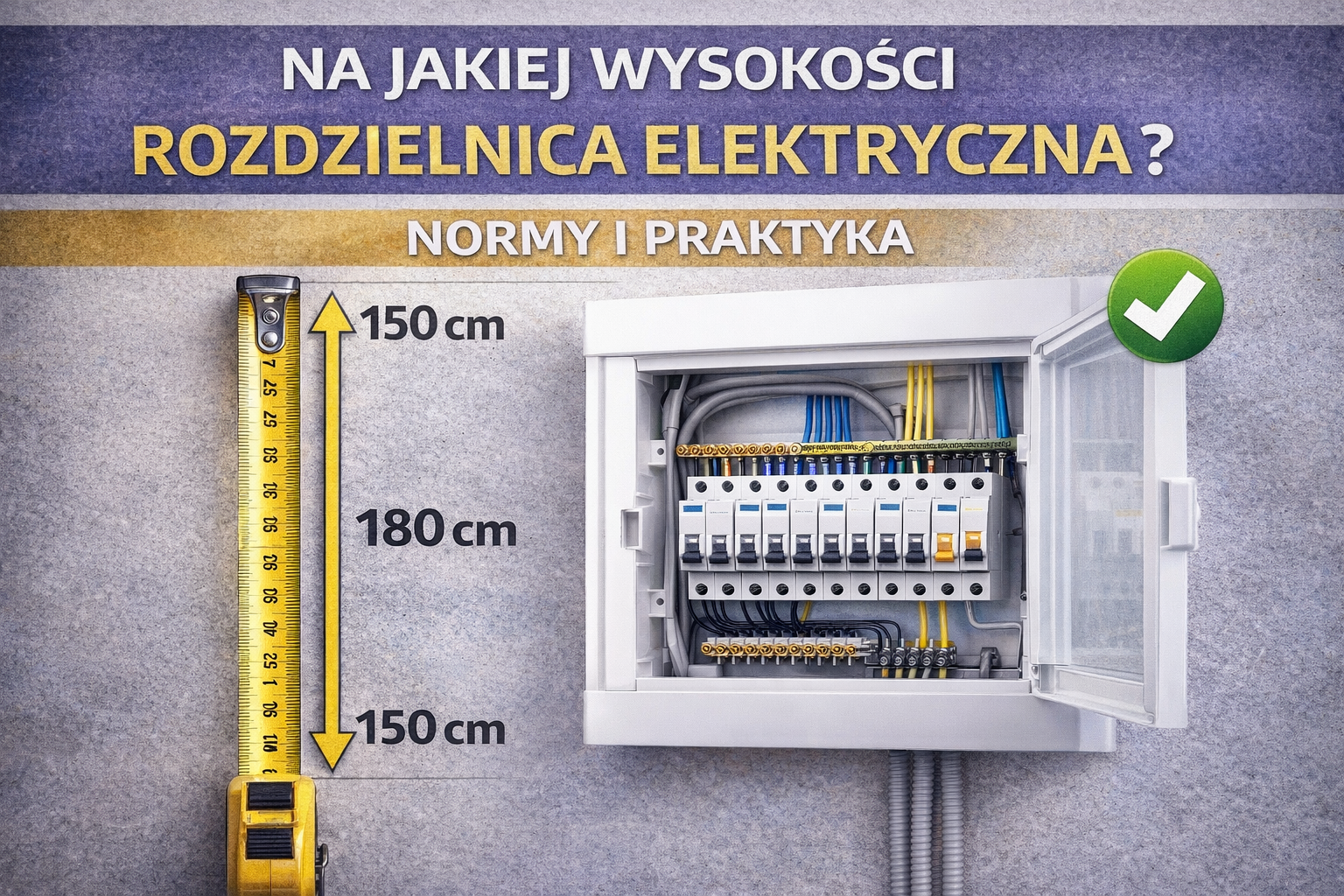 - 140–180 cm od poziomu podłogi – do górnej krawędzi rozdzielnicy