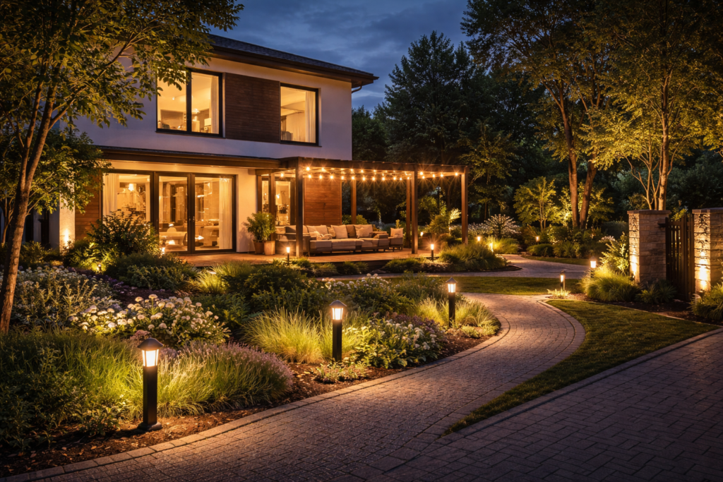 Dobrze zaprojektowane oświetlenie ogrodu to połączenie funkcjonalności i klimatu – dzięki niemu przestrzeń wokół domu staje się praktyczna i wyjątkowa po zmroku.