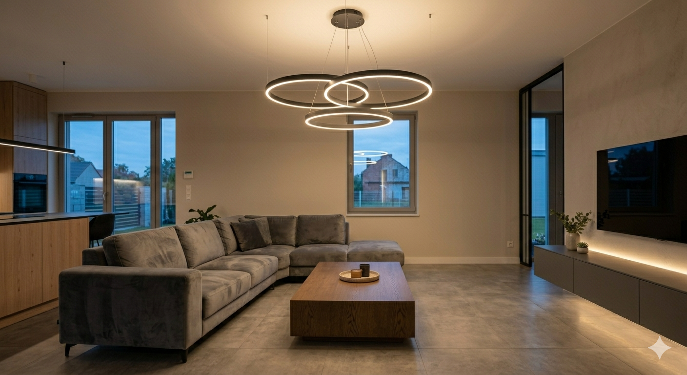 1. Żyrandole LED – minimalizm i funkcjonalność