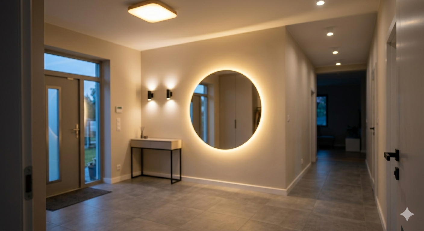 Lustro to jeden z najważniejszych elementów przedpokoju, a jego dobre oświetlenie znacząco podnosi komfort użytkowania.